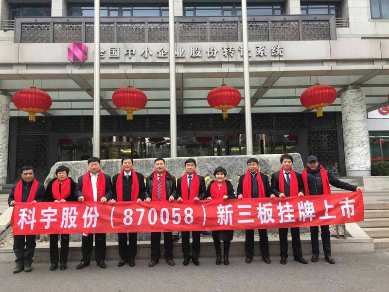 慶祝遼寧科宇機(jī)械裝備制造股份有限公司2016年12月19日在中小企業(yè)股份轉(zhuǎn)讓系統(tǒng)(新三板)順利掛牌。(股票簡稱:科宇股份,代碼:870058),正式踏上了實(shí)體經(jīng)濟(jì)與資本運(yùn)營共濟(jì)發(fā)展之路。